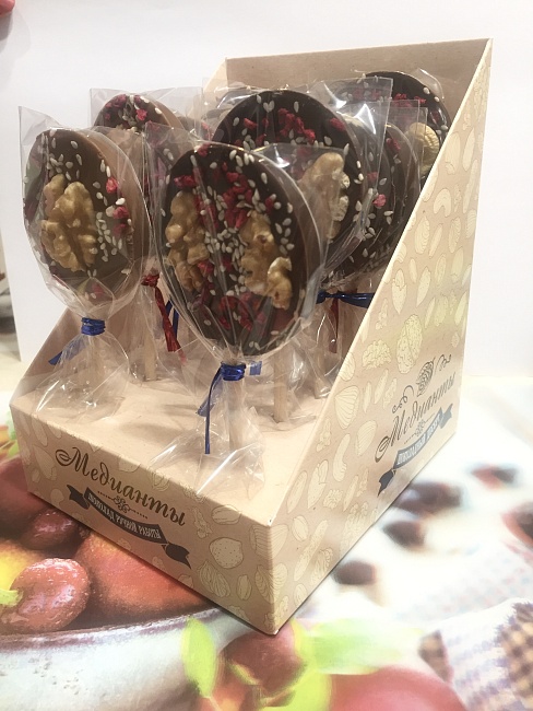 Десерт шоколадный "Медианты" темный (с орехами и сублимированными ягодами) (30гр.) (уп.10шт.)