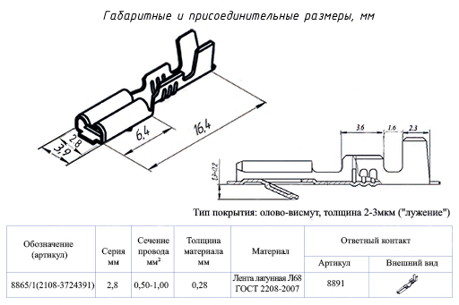 Клемма "мама" серия 2,8мм К1, колодочная (под провод от 0,50 до 1,00 мм кв., лужен., уп.50шт)