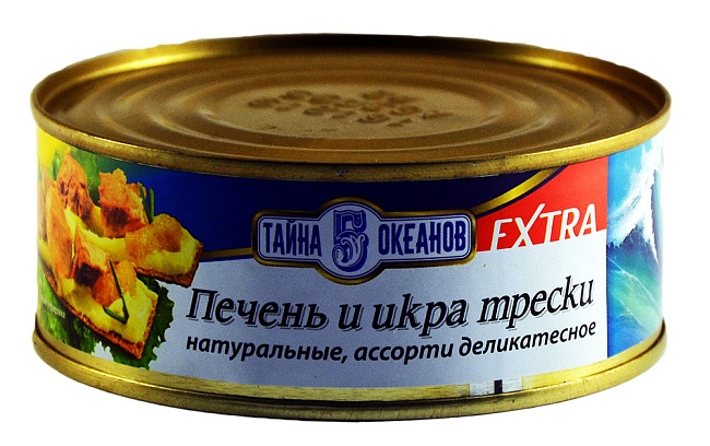 Печень и икра трески ассорти деликатесное, 230 гр. ТМ Тайна 5 Океанов 1/24